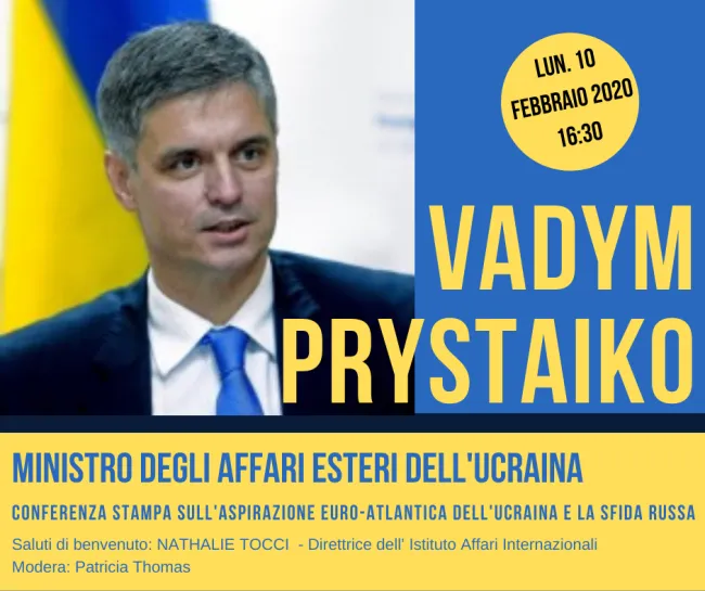 Ukraine’s Euro-Atlantic Aspiration and the Russian ChallengeData evento 10/02/2020 | Luogo Rome, Associazione della Stampa Estera in ItaliaImage BY INVITATION ONLY A briefing with Vadym Prystaiko, Minister of Foreign Affairs of UkraineTopic Russia, Turkey, Balkans, Eastern EuropeTag Ukraine