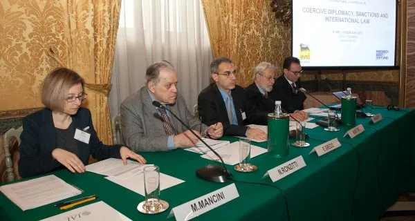 With Europe facing difficult choices on whether to relax or expand the existing sanctions regime against Russia, a new IAI research document analyses the relationship between coercive diplomacy and international law. Summarizing the proceedings of an international conference held in Rome and organized by IAI in partnership with ENI and Friedrich-Ebert-Stiftung, the document addresses the overall effectiveness of sanctions as a tool for foreign policy, the EU's approach to sanctions and their impact on existing treaties, non-state actors and individual rights.