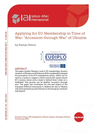 The paper studies Ukraine’s road to EU membership. Russia’s invasion of Ukraine on 24 February 2022 considerably changed the perception of the EU’s enlargement policy, which can be used as a means to support a third country that openly shares EU common values and is ready to defend these values on a battlefield. This process can be labelled “accession through war”. The paper also scrutinises the role and impact of the European Political Community to address the war in Ukraine and other potential security threats on the European continent and beyond.