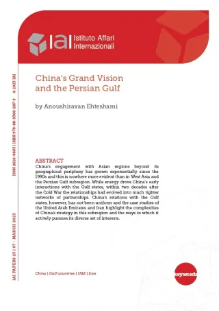 China’s engagement with Asian regions beyond its geographical periphery has grown exponentially since the 1990s and this is nowhere more evident than in West Asia and the Persian Gulf subregion. While energy drove China’s early interactions with the Gulf states, within two decades after the Cold War the relationships had evolved into much tighter networks of partnerships. China’s relations with the Gulf states, however, has not been uniform and the case studies of the United Arab Emirates and Iran highlight the complexities of China’s strategy in this subregion and the ways in which it actively pursues its diverse set of interests.
