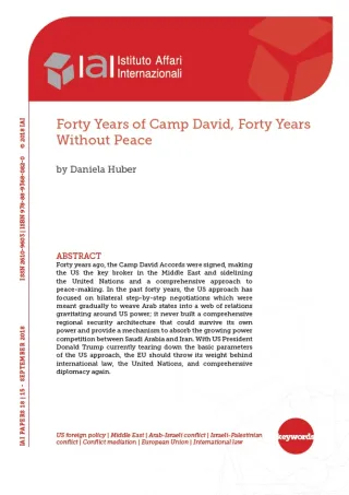 Forty years ago, the Camp David Accords were signed, making the US the key broker in the Middle East and sidelining the United Nations and a comprehensive approach to peace-making. In the past forty years, the US approach has focused on bilateral step-by-step negotiations which were meant gradually to weave Arab states into a web of relations gravitating around US power; it never built a comprehensive regional security architecture that could survive its own power and provide a mechanism to absorb the growing power competition between Saudi Arabia and Iran. With US President Donald Trump currently tearing down the basic parameters of the US approach, the EU should throw its weight behind international law, the United Nations, and comprehensive diplomacy again.