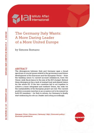 Paper prepared by the Istituto Affari Internazionali (IAI) on behalf of the Friedrich Ebert Foundation-Rome Office, February 2018. See also: Was Italien sich von Deutschland wünscht. Ein wagemutiges Deutschland für ein wagemutiges Europa, Berlino, Friedrich-Ebert-Stiftung, February 2018, 7 p. (Politik für Europa #2017 plus), ISBN 978-3-96250-059-7.