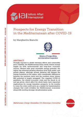 Strongly exposed to global warming effects and commodity price volatility, the Mediterranean basin needs cleaner energy supply for both environmental and long-term economic reasons. Blessed with great renewable energy potential, the region has attracted growing attention from both public and private players, although several obstacles still hamper the energy transition in the region, with considerable differences between the northern shore and the southern shore (where RES potential is largely untapped). The ongoing COVID-19 pandemic, the related economic crisis and the shock in oil and gas prices, which affect the whole basin, have important implications for energy transition prospects. In the months to come the crisis could serve as a catalyst for transformative changes that could revitalise the Mediterranean economies along with meeting stronger decarbonisation goals.