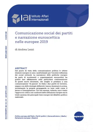 From the point of view of political communication, the last European elections were characterised by the great influence of social networks. The narration of European policies by Eurosceptic movements and organisations has been able to rely on these particular new instruments, which are better suited to a direct communication. In Italy the two Government parties, using different strategies, dominated the scene, focusing their propaganda on hot topics such as work and immigration. What emerges, however, is not only the critical approach towards the European institutions but the total absence of the main European themes from the national political debate.