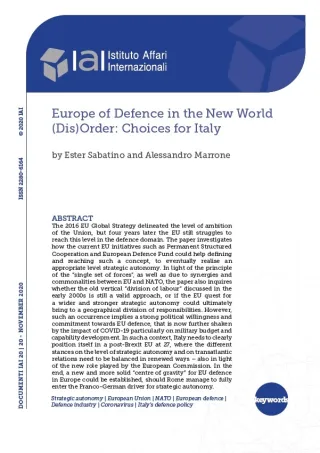 Europe of Defence in the New World (Dis)Order: Choices for Italy