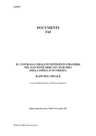 Il controllo degli investimenti stranieri nel nascente mercato europeo della difesa e sicurezza. Rapporto finale