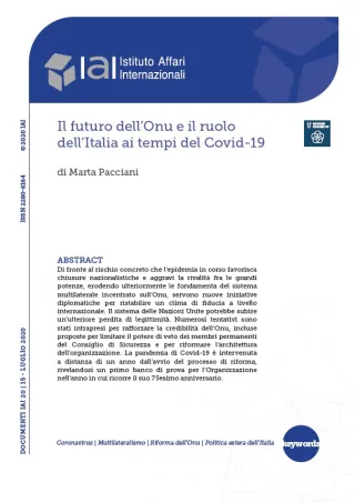 Di fronte al rischio concreto che l’epidemia in corso favorisca chiusure nazionalistiche e aggravi la rivalità fra le grandi potenze, erodendo ulteriormente le fondamenta del sistema multilaterale incentrato sull’Onu, servono nuove iniziative diplomatiche per ristabilire un clima di fiducia a livello internazionale. Il sistema delle Nazioni Unite potrebbe subire un’ulteriore perdita di legittimità. Numerosi tentativi sono stati intrapresi per rafforzare la credibilità dell’Onu, incluse proposte per limitare il potere di veto dei membri permanenti del Consiglio di Sicurezza e per riformare l’architettura dell’organizzazione. La pandemia di Covid-19 è intervenuta a distanza di un anno dall’avvio del processo di riforma, rivelandosi un primo banco di prova per l’Organizzazione nell’anno in cui ricorre il suo 75esimo anniversario.