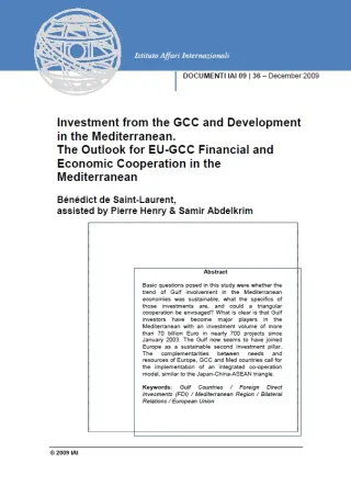 Investment from the GCC and Development in the Mediterranean. The Outlook for EU-GCC Financial and Economic Cooperation in the Mediterranean