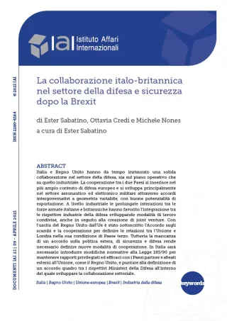 Italy and the United Kingdom have pursued a solid and long-lasting collaboration in the defence sector, both on an operational and industrial level. This cooperation is part of the broader European defence context, and has been mainly developed in the aeronautics and military electronics sectors, through intergovernmental agreements with variable geometry and good export potential. At the industrial level, the prolonged interactions between the Italian and British armed forces have favoured the integration between the respective defence industries by developing shared working methods, also following the creation of joint ventures. With the United Kingdom’s exit from the EU, the Agreement on trade and cooperation was signed to define relations between the EU and London in its status of “third country”. However, the lack of agreement on foreign, security and defence policies implies the need to find new cooperation paths. Hence, within the Italian context, it will be necessary to introduce regulatory changes to Law 185/90 in order to maintain privileged and effective relations with partner countries and allies outside the Union, such as the United Kingdom. Also, a framework agreement between the respective Defence Ministries could be a major step to develop sectoral collaboration.