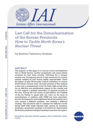 Last Call for the Denuclearisation of the Korean Peninsula. How to Tackle North Korea's Nuclear Threat