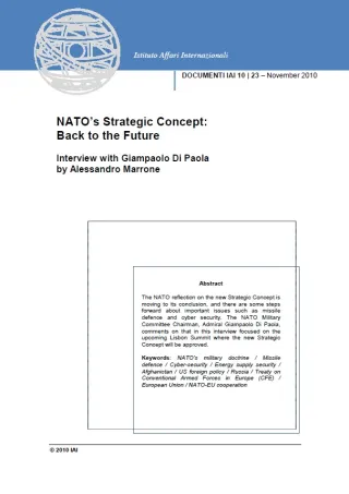Translation of an interview with Admiral Giampaolo Di Paola, NATO Military Committee Chairman, published as "La Nato guarda al futuro", in AffarInternazionali, 28 October 2010, and "La consapevolezza globale della Nato", in Europa, 18 November 2010.