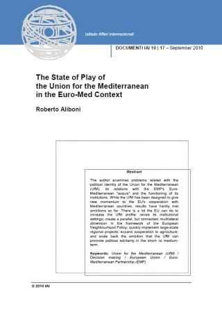 The State of Play of the Union for the Mediterranean in the Euro-Med Context