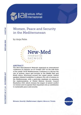 Report of the international conference “Women, Peace and Security: A Gender Perspective on the Future of the MENA Region” held in Palermo on 23 October 2017 and organized within the framework of the New-Med Research Network.
