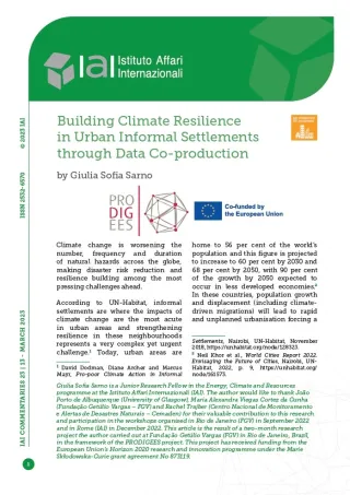 [18] David Satterthwaite et al., “Building Resilience to Climate Change in Informal Settlements”, in One Earth, Vol. 2, No. 2 (21 February 2020), p. 143-156, https://doi.org/10.1016/j.oneear.2020.02.002.