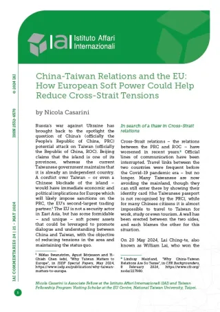[8] Nicola Casarini, “Brussels–Taipei: Changing the Game?”, in IAI Commentaries, No. 22|43 (September 2022), p. 1, https://www.iai.it/en/node/16049.