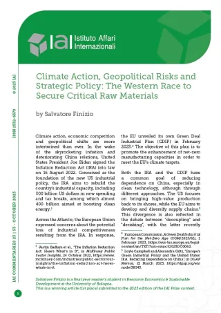 Climate Action, Geopolitical Risks and Strategic Policy: The Western Race to Secure Critical Raw Materials
