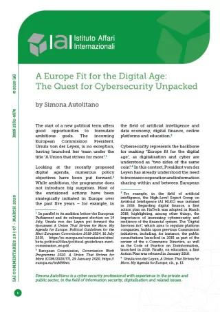 A Europe Fit for the Digital Age: The Quest for Cybersecurity Unpacked