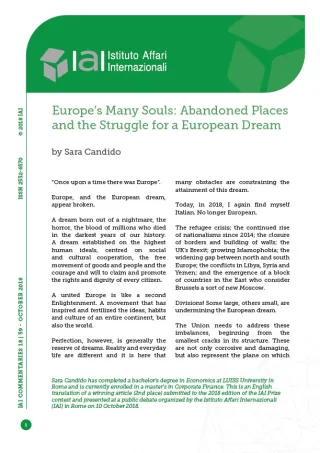 * Sara Candido has completed a bachelor’s degree in Economics at LUISS University in Rome and is currently enrolled in a master’s in Corporate Finance. This is an English translation of a winning article (2nd place) submitted to the 2018 edition of the IAI Prize contest and presented at a public debate organized by the Istituto Affari Internazionali (IAI) in Rome on 10 October 2018.