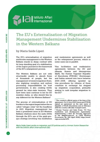 * Maria Saide Liperi works on migration and EU policies and is a former Junior Researcher with the Istituto Affari Internazionali (IAI).