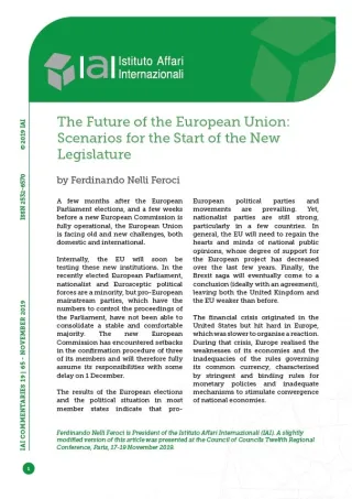 * Ferdinando Nelli Feroci is President of the Istituto Affari Internazionali (IAI).