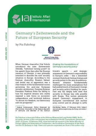 [2] Jana Puglierin, “Germany’s ‘Zeitenwende’ and Its Implications for the European Security Architecture”, in Berlin Perspectives, No. 1/2023, https://iep-berlin.de/en/projects/germany-and-europe/berlinperspectives/zeitenwende.