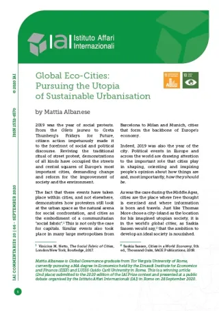 [15] Simon Joss, Robert Cowley and Daniel Tomozeiu, “Towards the ‘Ubiquitous Eco-City’: An Analysis of the Internationalisation of Eco-City Policy and Practice”, in Urban Research & Practice, Vol. 6, No. 1 (2013), p. 54-74.