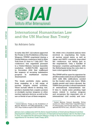* Adriano Iaria collaborates with the Rome-based Institute of International Research Archive Disarmament (IRIAD) and is an instructor of international humanitarian law for the Red Cross. In 2012, he supported the Permanent Mission of Italy to the United Nations in the context of negotiations for the Arms Trade Treaty (ATT).