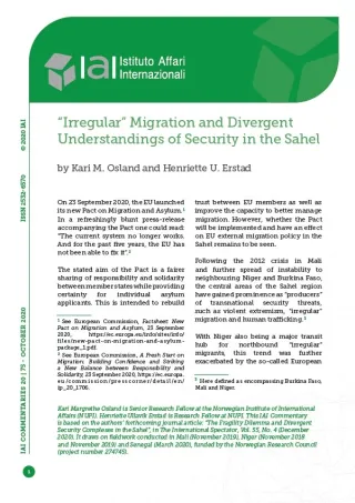 [17] For more on this, see Eva Magdalena Stambøl, “The Rise of Crimefare Europe: Fighting Migrant Smuggling in West Africa”, in European Foreign Affairs Review, Vol. 24, No. 3 (2019), p. 287-307.