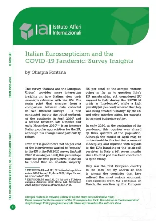 Italian Euroscepticism and the COVID-19 Pandemic: Survey Insights