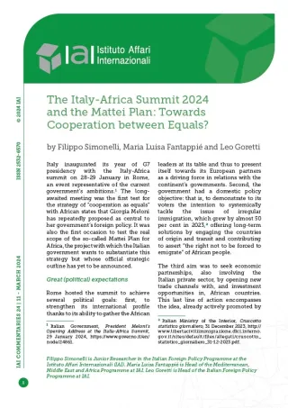 The Italy-Africa Summit 2024 and the Mattei Plan: Towards Cooperation between Equals?