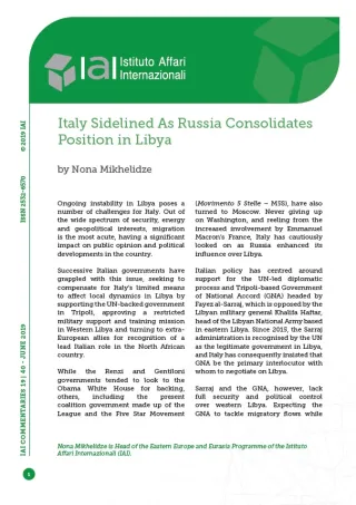 [13] Anna Maria Dyner, “Russia’s Libya Policy”, in PISM Bulletin, No. 6 = 1252 (15 January 2019), p. 2, http://www.pism.pl/files/?id_plik=25305.