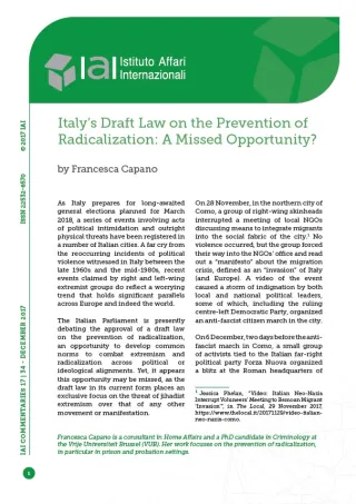 Italy's Draft Law on the Prevention of Radicalization: A Missed Opportunity?