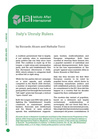 A previous version of this article was published in Spanish: “Incertidumbre a la italiana”, in Política Exterior, Vol. 32, No. 186 (November/December 2018), p. 8-14, https://www.politicaexterior.com/?p=44218.