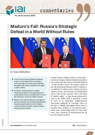 The Kremlin’s strategic defeat is not a single lost battle or an abandoned ally – it is cumulative, structural and inseparable from the broader unravelling of the international order described at the outset. From Ukraine to the Middle East, from the Caucasus to Central Asia, and now across the Atlantic to Latin America, each crisis has further exposed the gap between Russia’s ambitions and its real capacity to shape outcomes. Having embraced early on a world in which power overrides law and coercion replaces rules, Moscow now operates in an environment of its own making – one that renders the international system more unpredictable, more violent and less constrained for all actors. In this context, in trying to prove it was more than a regional power, Russia has instead entrenched – if not actively undermined and compromised – even that very status. It remains potent in its destructive capacity, yet increasingly unable to translate force into lasting influence or recognised power. This is not merely a defeat across multiple theatres, but the strategic exhaustion of a model that bet on the erosion of rules and now helps produce a world in which even its own architects end up paying the highest price.