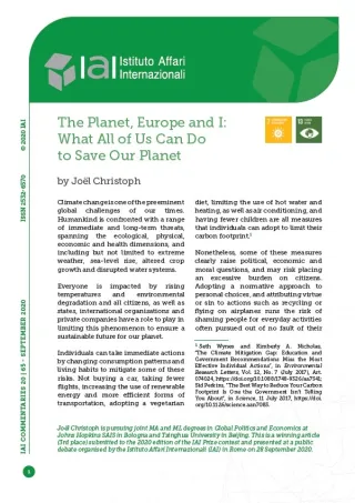 * Joël Christoph is pursuing joint MA and ML degrees in Global Politics and Economics at Johns Hopkins SAIS in Bologna and Tsinghua University in Beijing. This is a winning article (3rd place) submitted to the 2020 edition of the IAI Prize contest and presented at a public debate organised by the Istituto Affari Internazionali (IAI) in Rome on 28 September 2020.