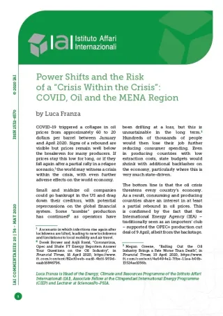 Power Shifts and the Risk of a “Crisis Within the Crisis”: COVID, Oil and the MENA Region