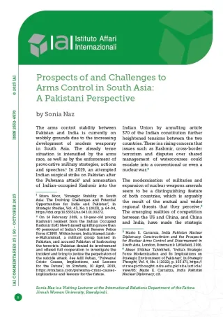 Prospects of and Challenges to Arms Control in South Asia: A Pakistani Perspective