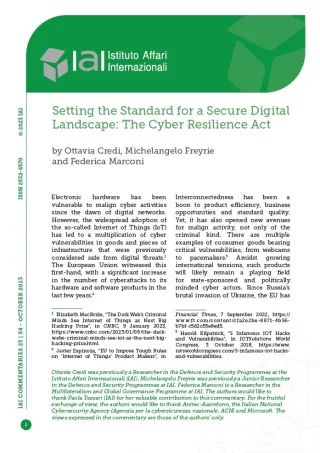 The authors would like to thank Paola Tessari (IAI) for her valuable contribution to this commentary. For the fruitful exchange of view, the authors would like to thank Anitec-Assinform, the Italian National Cybersecurity Agency (Agenzia per la cybersicurezza nazionale, ACN) and Microsoft. The views expressed in the commentary are those of the authors’ only.