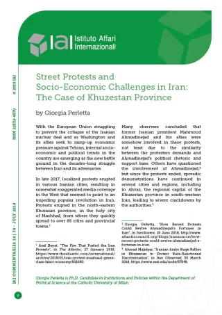 [2] Giorgia Perletta, “How Recent Protests Could Revive Ahmadinejad’s Fortunes in Iran”, in IranSource, 18 June 2018, http://www.atlanticcouncil.org/blogs/iransource/how-recent-protests-could-revive-ahmadinejad-s-fortunes-in-iran.