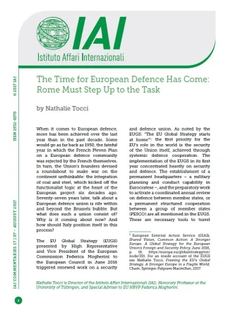 The Time for European Defence Has Come: Rome Must Step Up to the Task