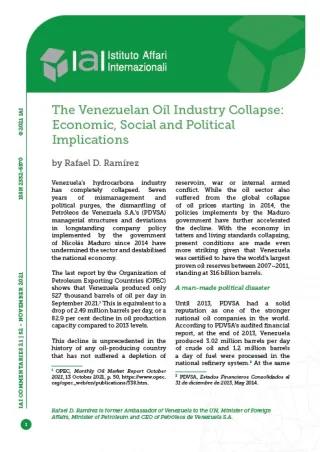 The Venezuelan Oil Industry Collapse: Economic, Social and Political Implications