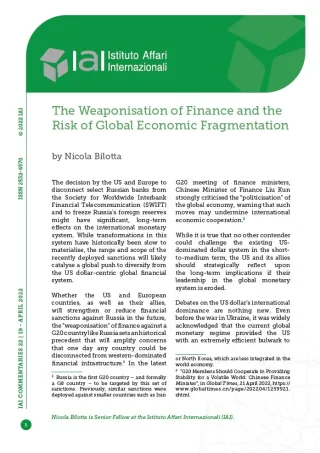 The Weaponisation of Finance and the Risk of Global Economic Fragmentation