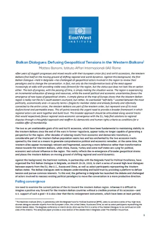 Balkan Dialogues: Defusing Geopolitical Tensions in the Western Balkans