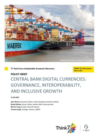 As economies have become increasingly digitalized, central bank digital currencies (CBDCs) have been at the forefront of the agenda for central banks as a means to enhance payments systems’ efficiency (both domestically and cross-border) and increase financial inclusion, and more broadly to support the effective transmission of monetary policy in the digital age (BIS, 2020; Boar and Wehrli, 2021). While the potential of CBDCs to meet these goals is clear, a secure underlying infrastructure and a credible, globally accepted system is of paramount importance. This would help to mitigate against potential cybersecurity and financial crime risks related to fraud and illicit payments. More broadly, the development of a sound, efficient and interoperable system to enable friction-free use of CBDCs across borders and national systems would help to maintain stability, enhance financial inclusion and support inclusive growth. This policy brief, recognizing the faster pace of digital transformation and innovations in digital finance post-pandemic, calls for the G7 to champion and steward widespread preparations for the introduction of a globally interoperable system for CBDCs. This includes bringing together central banks and international financial institutions to understand the cross-border dimensions in the optimal design of CBDCs and supporting infrastructures, in order to ensure that central bank issued money retains relevance as a vehicle for monetary policy transmission and global financial stability. A coordinated approach to the interoperability of CBDCs would also help to alleviate the potential misuse of CBDC systems for financial crime purposes, such as evading sanctions on financial transactions. The policy brief also proposes policy options for maximizing the potential of CBDCs for inclusive growth, notably in relation to lifting prevailing levels of digital education, financial literacy, and digital infrastructure as part of distribution.