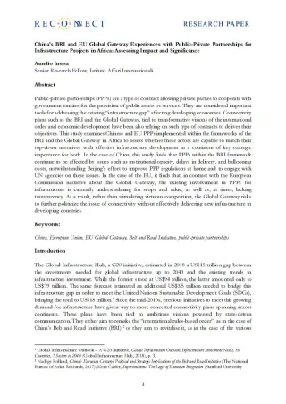 Public-private partnerships (PPPs) are a type of contract allowing private parties to cooperate with government entities for the provision of public assets or services. They are considered important tools for addressing the existing “infrastructure gap” affecting developing economies. Connectivity plans such as the BRI and the Global Gateway, tied to transformative visions of the international order and economic development have been also relying on such type of contracts to deliver their objectives. This study examines Chinese and EU PPPs implemented within the frameworks of the BRI and the Global Gateway in Africa to assess whether these actors are capable to match their top-down narratives with effective infrastructure development in a continent of key strategic importance for both. In the case of China, this study finds that PPPs within the BRI framework continue to be affected by issues such as institutional opacity, delays in delivery, and ballooning costs, notwithstanding Beijing’s effort to improve PPP regulations at home and to engage with UN agencies on these issues. In the case of the EU, it finds that, in contrast with the European Commission narrative about the Global Gateway, the existing involvement in PPPs for infrastructure is currently underwhelming for scope and value, as well as, at times, lacking transparency. As a result, rather than stimulating virtuous competition, the Global Gateway risks to further politicize the issue of connectivity without effectively delivering new infrastructure in developing countries.