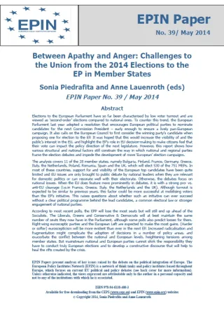 in Sonia Piedrafita and Anne Lauenroth (eds.), Between Apathy and Anger: Challenges to the Union from the 2014 Elections to the EP in Member States, in EPIN Papers, No. 39 (May 2014), p. 57-66