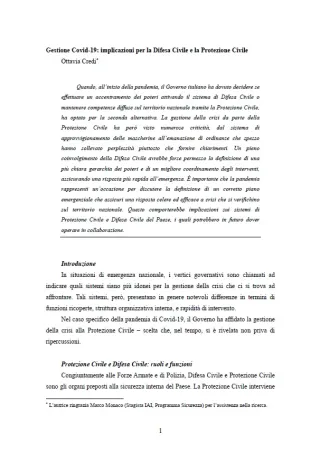 Gestione Covid-19: implicazioni per la Difesa Civile e la Protezione Civile