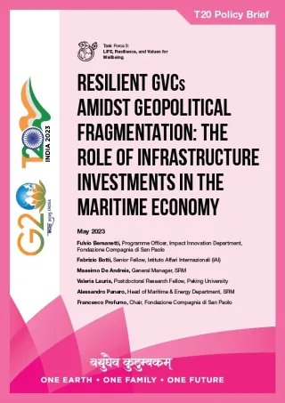 The maritime transport and logistics sector accounts for 80 percent of international traffic involving goods in terms of volume. The slowdown in international trade flows following the global financial crisis, and the disruptions in global value chains (GVCs) brought about by the COVID-19 pandemic and the Russia-Ukraine war, have raised awareness about the need to create new infrastructure models in this sector. These models should combine sustainability strategies and digital tools to help make the mechanisms governing freight traffic more resilient, fluid, and environment-friendly. The Green Ports model has the potential to foster investment in sustainable infrastructure while enhancing maritime transport resilience. Strengthening a coordinated infrastructure investment strategy for the maritime transport sector at the G20 level is crucial to respond to the challenges of increasing geoeconomic fragmentation.