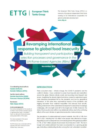 Revamping international response to global food insecurity. Building transparent and participatory selection processes and governance in the UN Rome-based Agencies (RBAs)