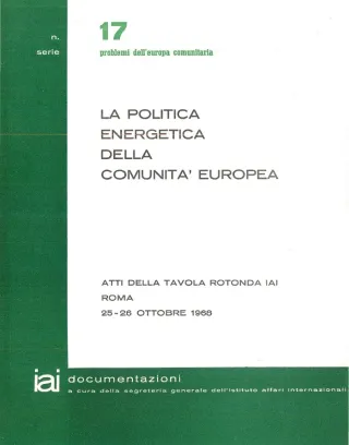 Completata l’Unione doganale e l’organizzazione comune dei mercati agricoli, la Comunità Economica Europea deve ora passare alla fase dell’Unione Economica. Uno degli strumenti essenziali per raggiungere questo obiettivo è la realizzazione di una politica comune dell’energia. Questo settore è stato finora vittima della divisione di competenze tra le tre Comunità esistenti, CEE, CECA ed EURATOM. L’avvenuta unificazione degli esecutivi comunitari ha finalmente consentito di affrontare in modo unitario i problemi del carbone, del petrolio e dell’energia nucleare. In coincidenza con la messa a punto delle proposte della Commissione delle Comunità Europee in questo settore, lo IAI ha organizzato nell’ottobre scorso una Tavola Rotonda con l’intento di mettere a confronto il punto di vista degli uffici comunitari con quello degli organi italiani responsabili della programmazione economica, e con gli operatori economici del settore.